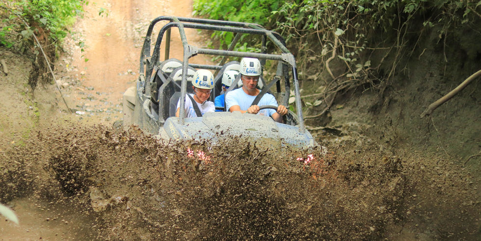 - Ride all-terrain Polaris UTVs through rivers and hanging bridges.